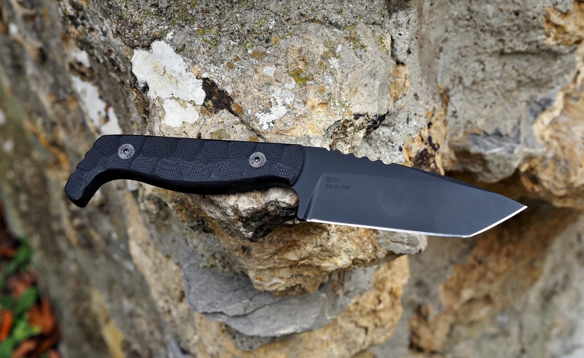 The production version is made out of 52100 steel heat treated to the optimal 60-61HRC Range for toughness, and edge retention.